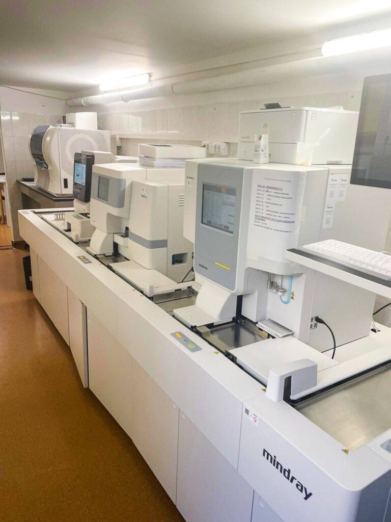 Laboratorul spitalului a fost dotat recent cu echipamente de ultimă generație, care permit efectuarea unei game extinse de analize, acoperind domenii precum hematologia, microbiologia, imunologia, biologia moleculară și genetica. Printre investigațiile disponibile se numără teste pentru alergii, afecțiuni autoimune, profil TORCH, determinări de calprotectină, teste HPV, infecții respiratorii, boli cu transmitere sexuală, trombofilie sau intoleranță la lactoză.
