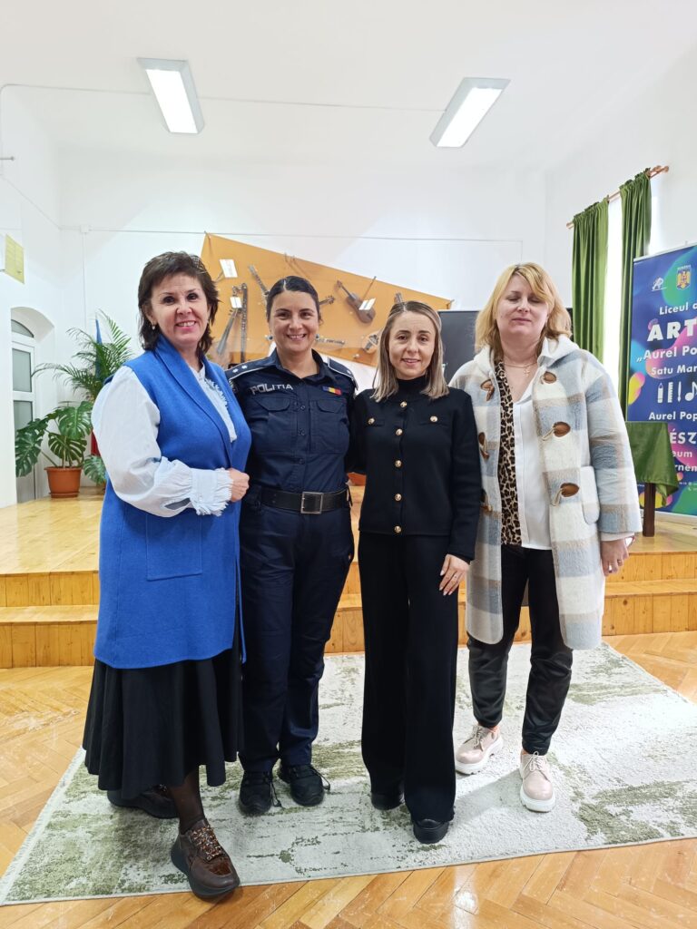 Liceul de Arte „Aurel Popp” din Satu Mare a găzduit evenimentul de lansare a concursului de afișe cu tema „Violența domestică rănește, dar noi o putem opri!”, organizat în cadrul campaniei naționale de prevenire a violenței domestice. Activitatea s-a desfășurat în prezența polițistului din structura de prevenire a criminalității, care s-a întâlnit cu elevii din ciclul liceal și cu cadrele didactice ce vor coordona realizarea afișelor.