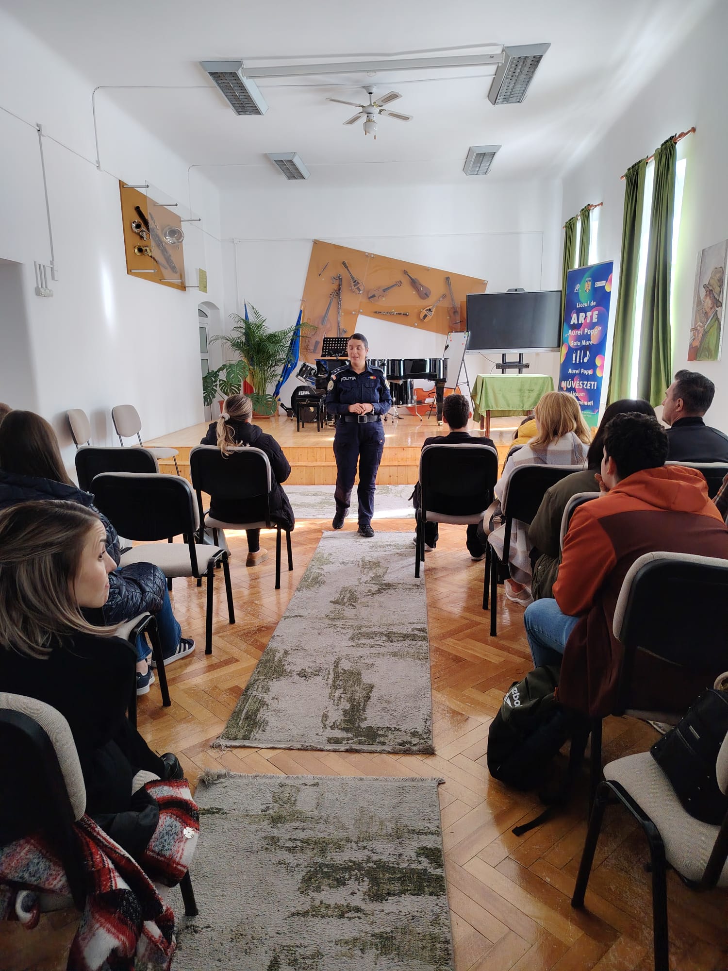 Liceul de Arte „Aurel Popp” din Satu Mare a găzduit evenimentul de lansare a concursului de afișe cu tema „Violența domestică rănește, dar noi o putem opri!”, organizat în cadrul campaniei naționale de prevenire a violenței domestice. Activitatea s-a desfășurat în prezența polițistului din structura de prevenire a criminalității, care s-a întâlnit cu elevii din ciclul liceal și cu cadrele didactice ce vor coordona realizarea afișelor.