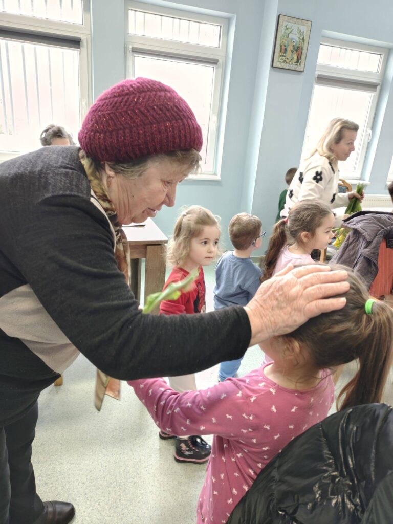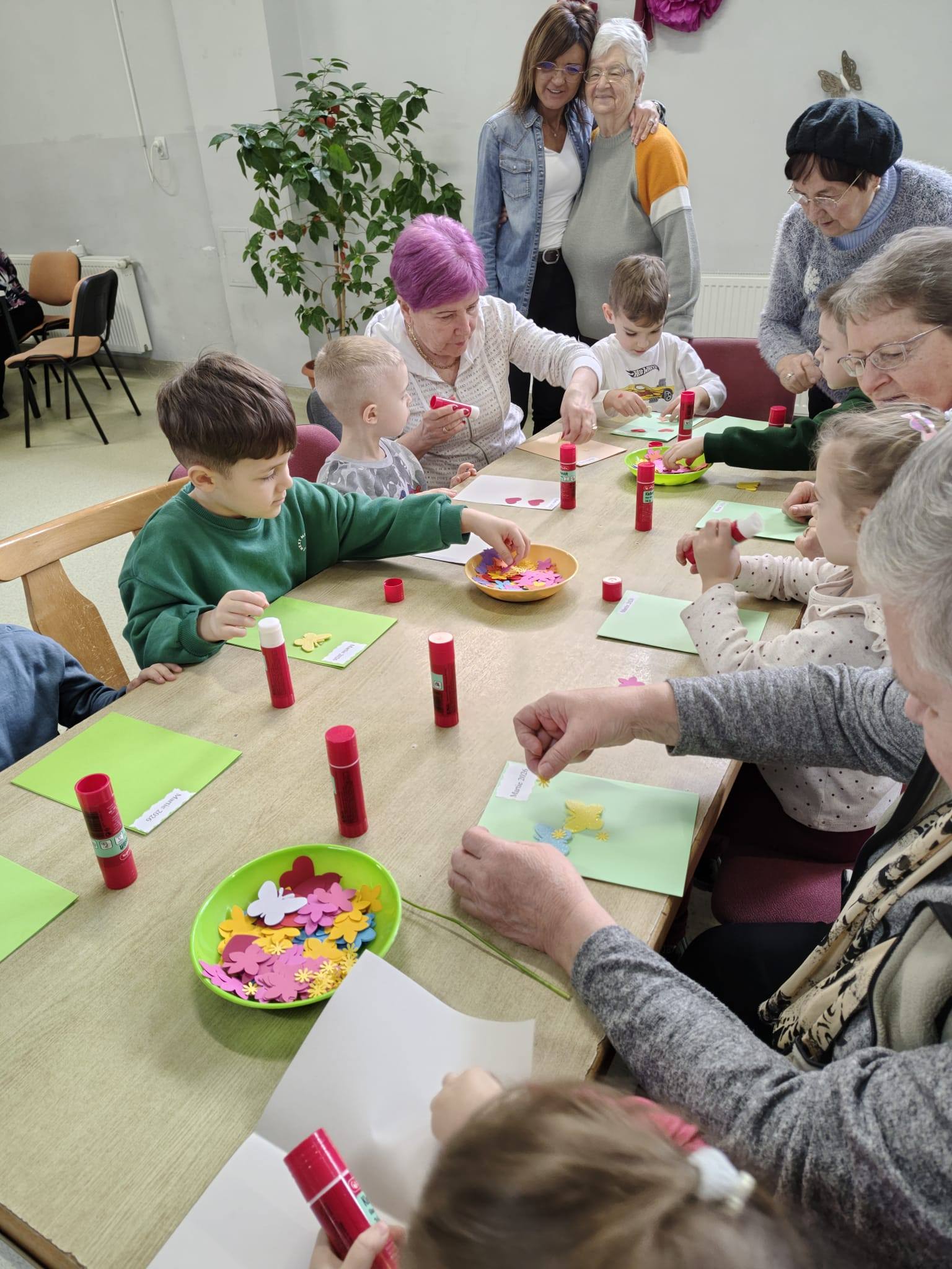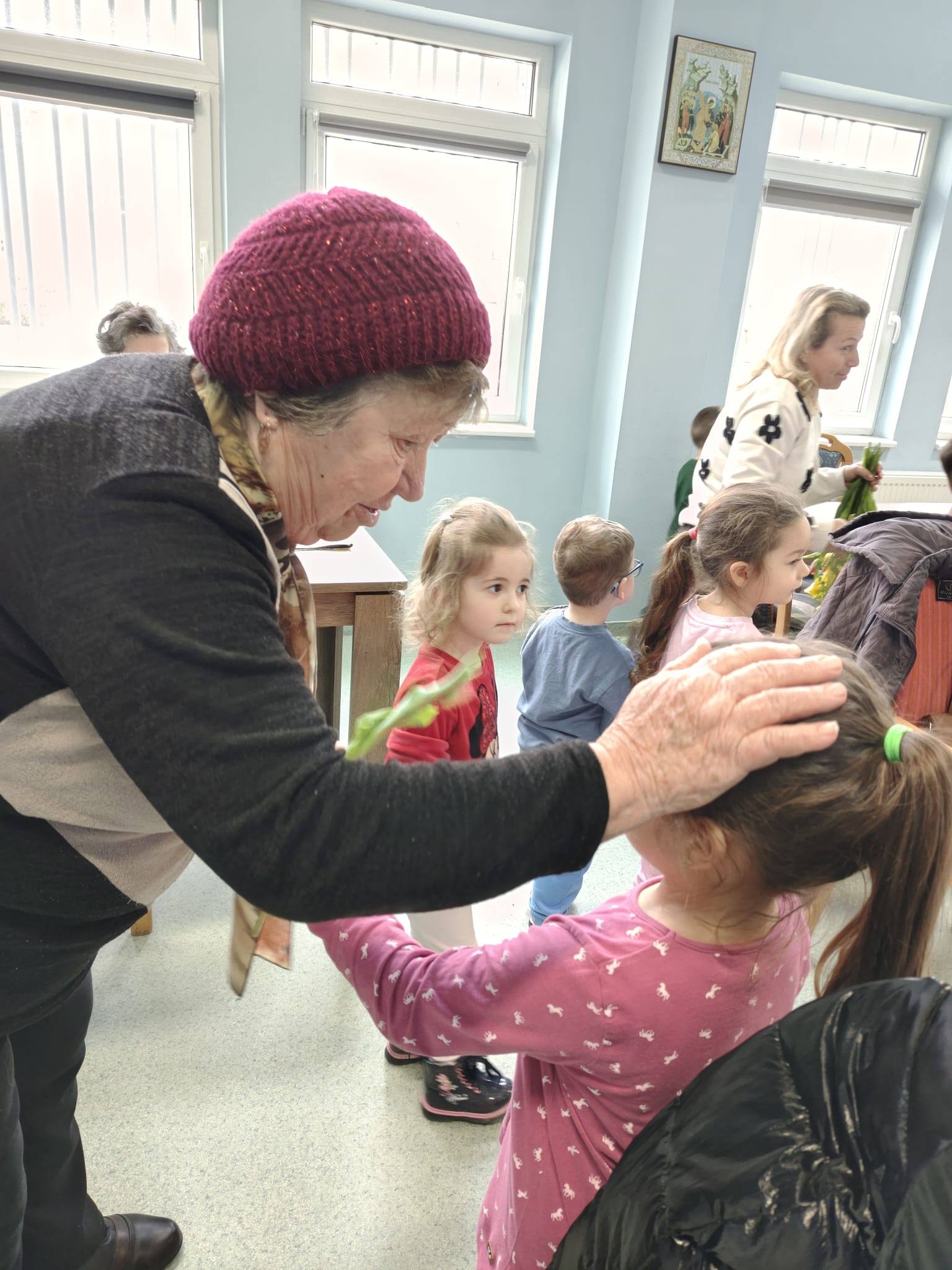 Cei mici au pregătit o surpriză simbolică: câte o lalea, floare ce vestește primăvara și renașterea naturii, dar și bucuria revederii. Momentul a continuat cu o activitate practică, în cadrul căreia copiii și vârstnicii au realizat împreună felicitări de primăvară. Mâinile mici, pline de entuziasm, și mâinile cu experiență au lucrat cot la cot, într-o atmosferă caldă și plină de afecțiune.