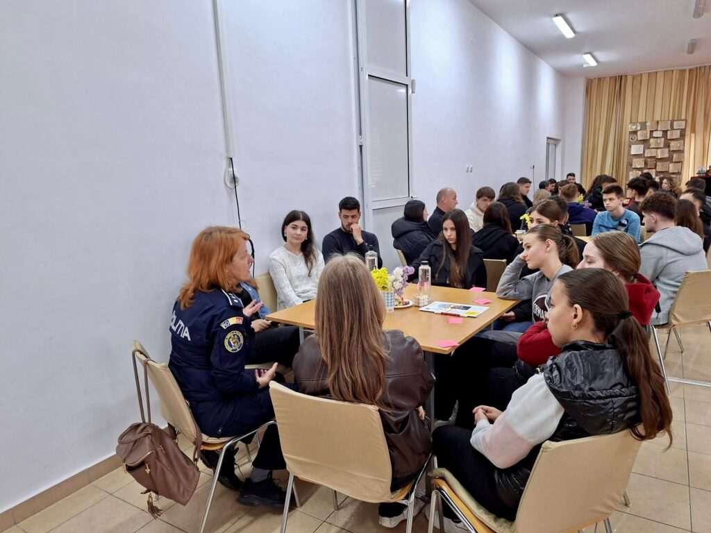 În data de 21 aprilie a.c., polițiștii Biroului Siguranță Școlară au participat la evenimentul educativ „Biblioteca Vie”, organizat la Liceul Tehnologic „Ioniță G. Andron” Negrești-Oaș, în cadrul Săptămânii Meseriilor. Activitatea a facilitat dialogul direct dintre elevi și profesioniști din diverse domenii, oferindu-le tinerilor modele inspiraționale și informații privind parcursul profesional, responsabilitatea socială și importanța alegerilor corecte în viață.