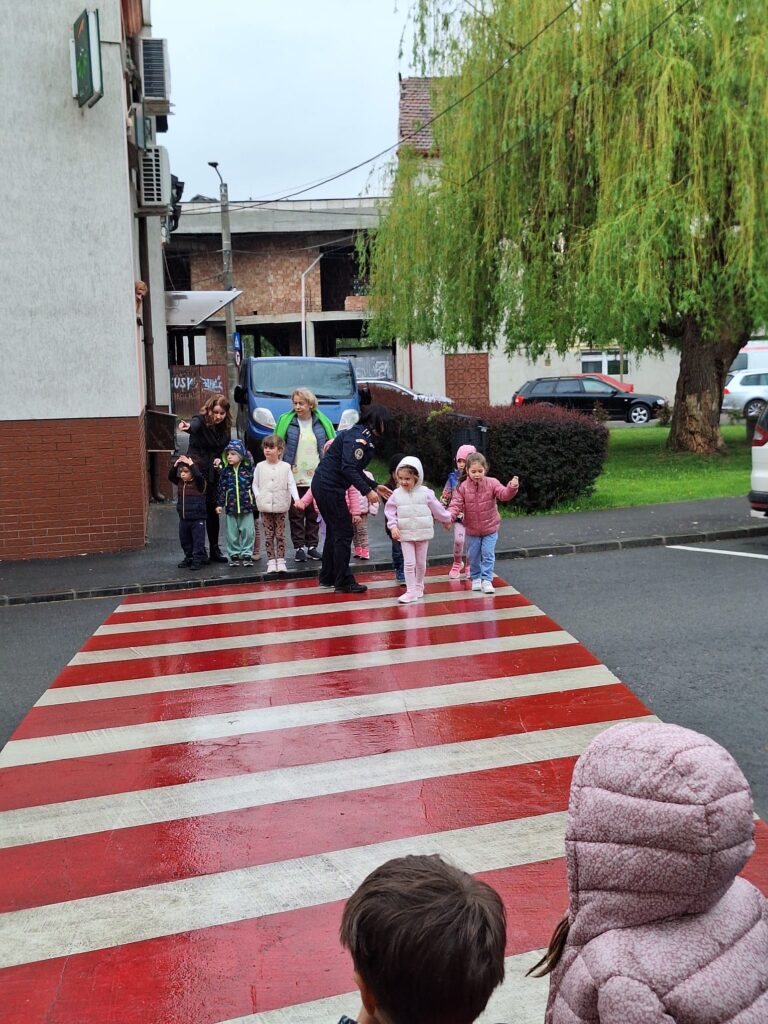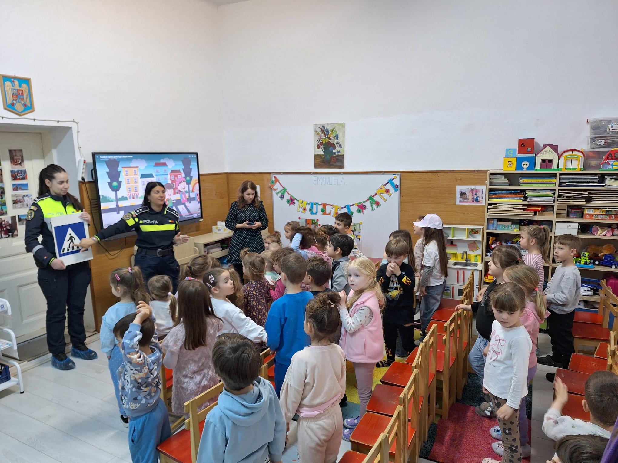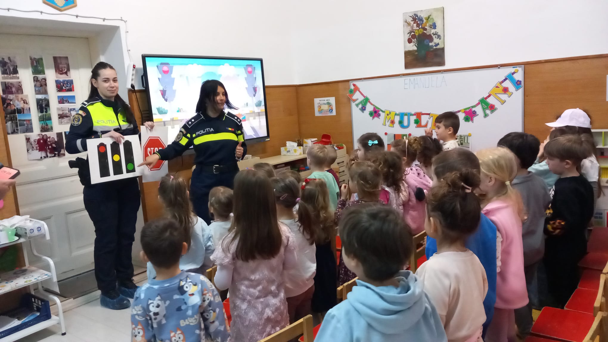 Acțiunea a avut loc în mediul real de trafic, unde cei mici au pus în practică regulile de circulație învățate anterior în sala de grupă, prin jocuri, cântece și informații adaptate vârstei. Sub îndrumarea polițiștilor, copiii au exersat modul corect de traversare a străzii și comportamentul sigur în calitate de pietoni.