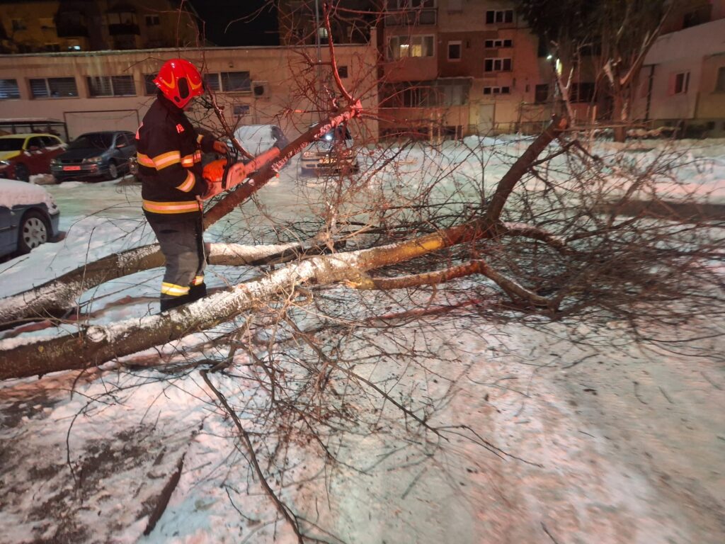 Astfel, salvatorii au acționat pentru degajarea unui copac doborât de vânt în municipiul Satu Mare, pe Bulevardul Independenței, dar și pentru alte cinci intervenții de îndepărtare a țurțurilor formați la nivelul unor clădiri, care puteau cădea oricând peste trecători.