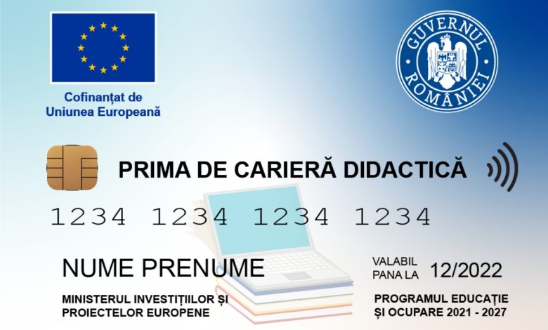 Cardurile pentru prima de cariera didactică au început să fie trimise cadrelor didactice luna trecută , acestea se alimentează, de regulă, în două-trei zile lucrătoare de la confirmarea primirii cardului de către beneficiarul final. Din cei 1.500 de lei, 450 sunt de la stat, iar restul de 1.050 de lei vin din fonduri europene.