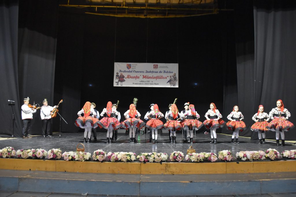 Centrul Județean pentru Conservarea și Promovarea Culturii Tradiționale Satu Mare cu sprijinul Consiliului Județean Satu Mare, în parteneriat cu Inspectoratul Școlar Județean Satu Mare și Casa de Cultură a Sindicatelor Satu Mare, a organizat sâmbătă 9 noiembrie 2024 în Sala Mare a Casei de Cultură a Sindicatelor cea de-a XII-a ediție a Festivalului Concurs Județean de Folclor „Danțu’ Mânânțăilor”.