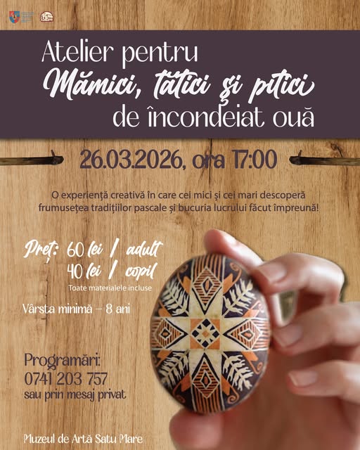 Pe 26 martie 2026, de la ora 17:00, mămicile, tăticii și cei mici sunt invitați să descopere arta încondeierii ouălor, un obicei vechi transmis din generație în generație. Într-o atmosferă caldă și prietenoasă, participanții vor învăța tehnici tradiționale și vor transforma ouăle simple în adevărate opere de artă, fiecare model spunând o poveste.