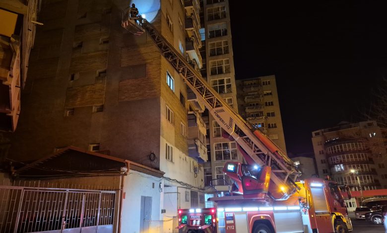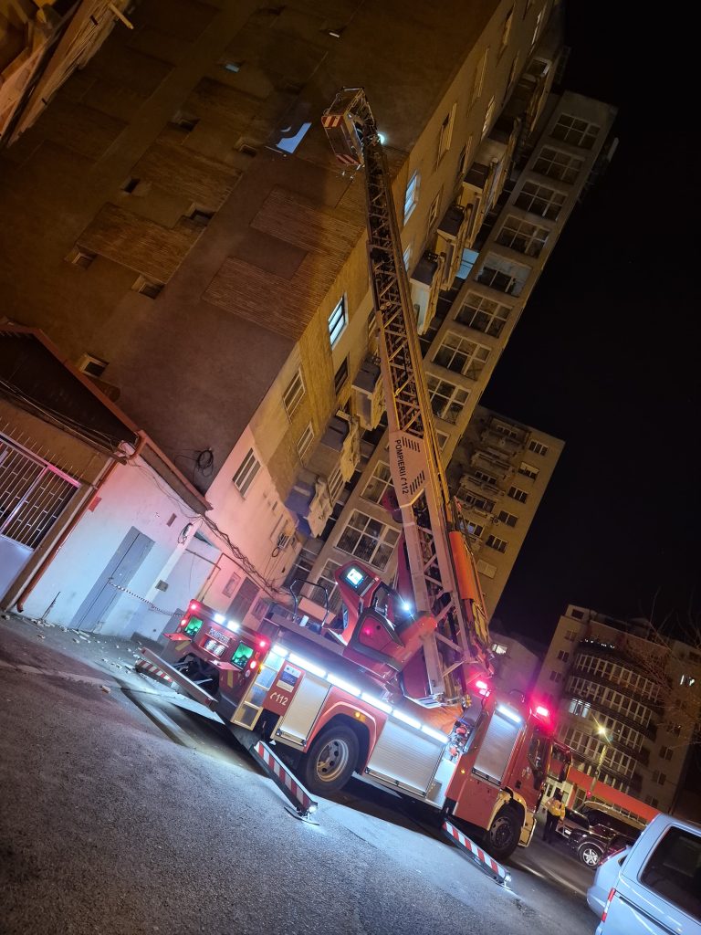 - Bulevardul Octavian Goga, municipiul Satu Mare – îndepărtarea unei table desprinse de pe un bloc- intervenție finalizată.
