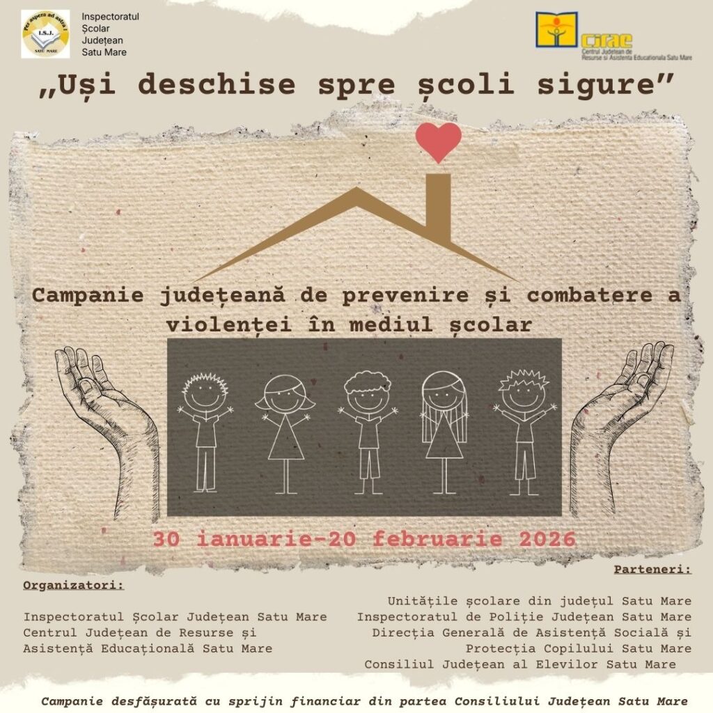 ,,Uși deschise spre școli sigure!,, Campanie de prevenire a violenței la Satu Mare!