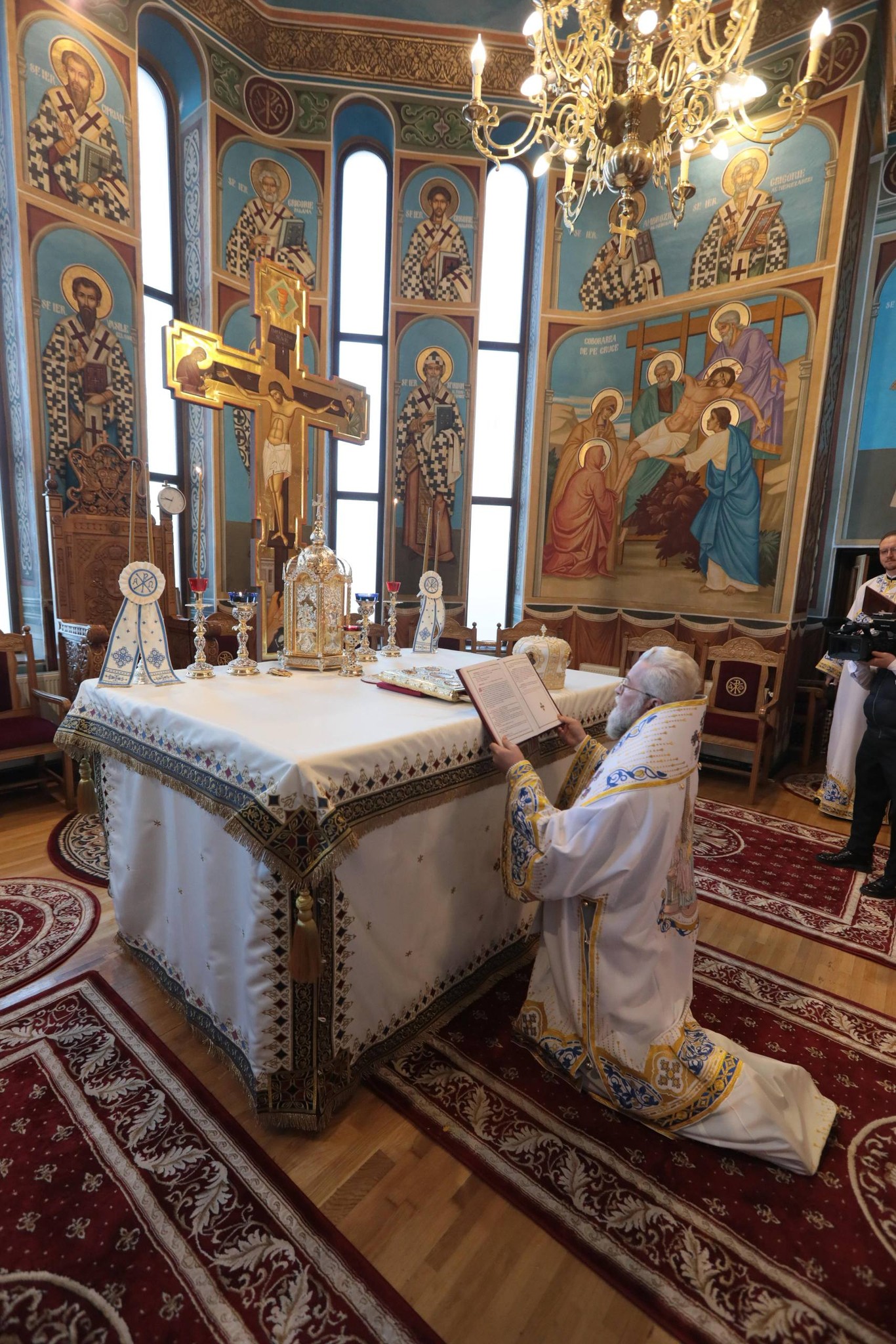 În continuare a fost oficiată Sfânta Liturghie, iar la final toți credincioșii s-au închinat în Sfântul Altar.