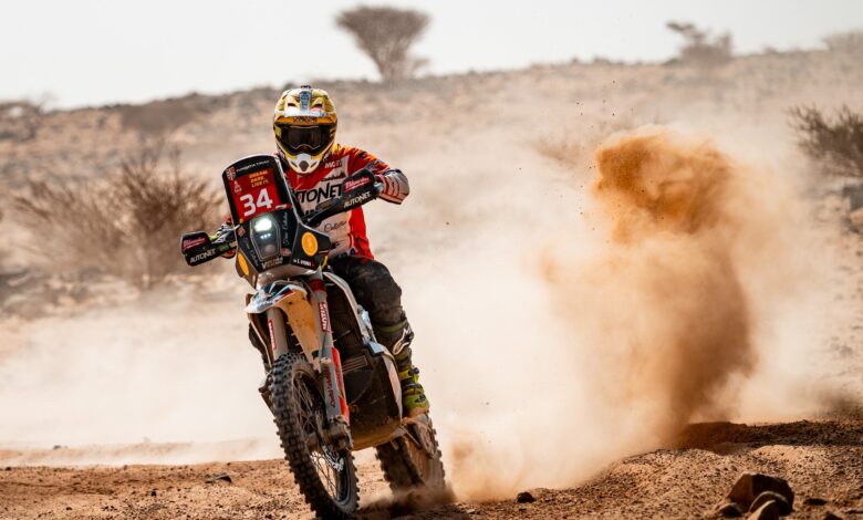 Etapa a 12-a s-a alergat pe distanţa totală de 720 km şi a adus o nouă schimbare în fruntea ierarhiei la clasa moto. Americanul Richy Brabec a revenit pe primul loc, după o cursă impecabilă în care l-a depăşit cu aproape 4 minute pe argentinianul Luciano Benavides, care a coborât pe poziţia secundă. Podiumul este completat de spaniolul Tosha Schareina, cu o întârziere de 10 minute faţă de lider.