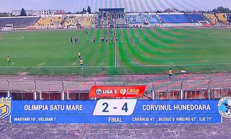 CSM Olimpia Satu Mare a bifat astăzi o nouă înfrângere în Liga a 2-a, cedând pe teren propriu cu scorul de 2-4 în fața formației Corvinul Hunedoara. Meciul a început într-un ritm alert, iar la pauză scorul era egal, 1-1, semn că sătmărenii puteau spera la un rezultat pozitiv. Repriza secundă a adus însă probleme majore pentru gazde: Corvinul a profitat de erorile defensive și s-a desprins la 4-1, înainte ca Olimpia să reducă din diferență, stabilind scorul final.