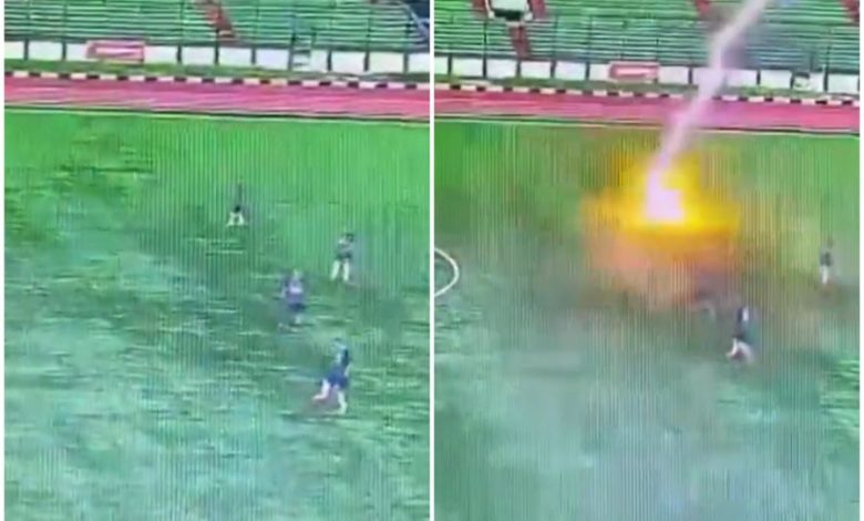Video: Scene ireale pe un teren de fotbal din Indonezia. Un jucător a fost omorât de un fulger, pe teren!